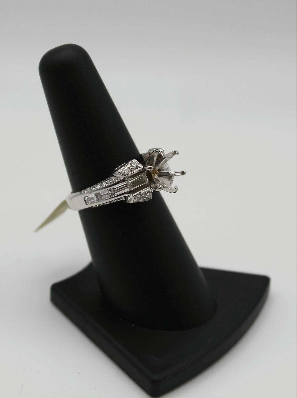 18K White Gold Diamond Baguette & Round Brilliant Engagement Ring Mounting